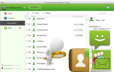 This Amacsoft Android Manager for Mac is very functional and practical. With it, you can not only backup everything on your Android device to Mac computer, but also manage files at will. For example, if you are going to backup contacts, you can work this software to achieve that. Meanwhile, you are allowed to directly add, edit or delete contacts on Mac OS X. In addition, this program provides you with a search box, which can help find the targeted phone numbers in a short time.