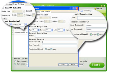You can edit the output PDF in order to output an ideal PDF document as you like. All editing options includes customizing page size, document margin, document description and so on.