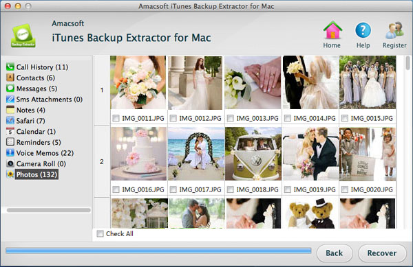 Amacsoft iTunes Backup Extractor for Mac (OS X 10.9 or later) or iTunes Backup Extractor (for Windows 8/7/XP) is the best data extracting software which is designed to extract and recover lost or deleted photos, videos, SMS, contacts and more from your iPhone, iPad and iPod. The software enables you to preview the files you want to extract or backup so that you can extract the photos separately. Now, you can free download the software to have a try. And the following tutorial will guide you through the process on how to extract pictures from iTunes backup for your iPhone 5S/5C/4S/4/3GS.