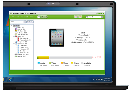Apple iPad is an ideal portable device for enjoying movies and music on the go. You just use iTunes to sync more and more movies and songs to your iPad. But the storage memory of the gadget is limited. And as a one-side manager, iTunes can not help you transfer data back to your computer. Thus, if you wanna copy and backup data from iPad to your computer, you'd better use third-party software. Amacsoft iPad to PC Transfer does a pretty good job here.