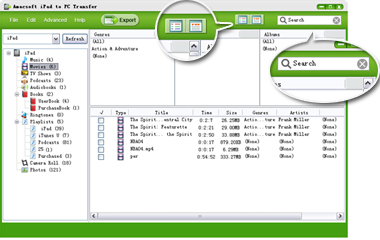 Filter and Quick Search Tools are available help you find what you want in your iPad quickly. Auto-scan your iPad devices and auto-search files by Name/Album/Artist/Genre.