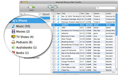 Amacsoft iPhone to Mac Transfer makes it possible to back up iPhone music, videos, movies, photos, podcasts and TV programs and more to Mac easily and quickly. It really a versa software for iTunes. But it's worth taking a moment to flag the fact that this iPhone Transfer for Mac program works just like iTunes but easier than iTunes. So if you want to find a easy to use third-party program to help you manage your iPhone files, then you can't miss this powerful program.