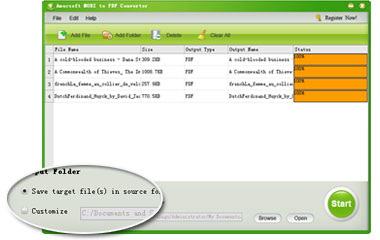 Have a pile of MOBI files needed to be managed in one PDF document? The program empowers you with the ability of combining various MOBI files into one single PDF file by checking the "Merge into one file" option.