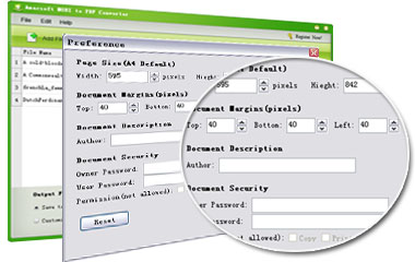 You are enabled to customize the page settings of the output PDF, including page size, margin and title, as well as permissions settings and proxy settings before you start the conversion. So that you can create an ideal PDF for your preference.