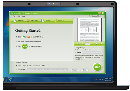 Are you still using the traditional screen capturing method to get images out of PDF files because copy and paste is not workable at all? Such clumsy way is feasible but when you face with multiple PDF files and wish to extract a pile of images from them, this method will be time-consuming. This PDF image extracting software is specially designed to help you extract all images from a batch PDF files with 3 simple steps: upload the PDFs to the program, set the page range and then begin the extraction.